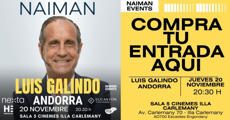 El próximo jueves 20 de noviembre, Andorra tendrá la oportunidad única de vivir en directo la conferencia de Luis Galindo, uno de los conferenciantes más inspiradores y carismáticos de habla hispana.